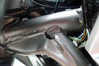 ミツマタ補強部分が押されて車体後方へ曲がったか。。。