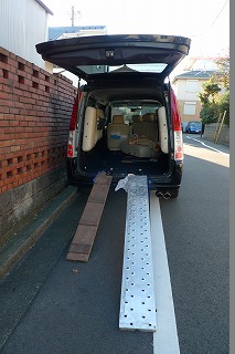 ちょうど、管理人のおじさんが軽自動車でサイトから帰ってきたところに遭遇したので
