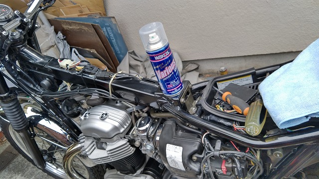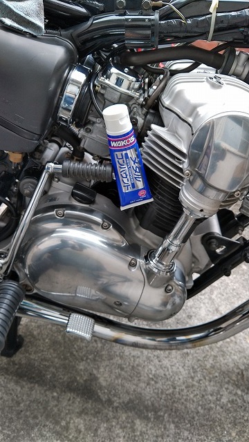 もちろんエンジン回りもやります。手の届くところはほぼウェスで埃落としてふきふきしました。ケーブル、ホース類もできるだけ綺麗に!