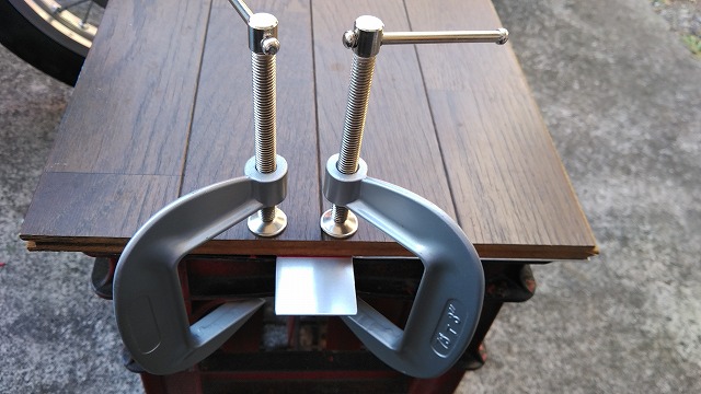 フレーム本体に傷が入らないように絶縁テープで養生。