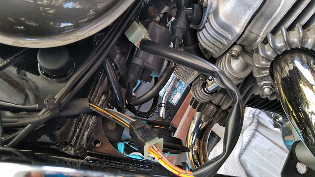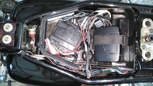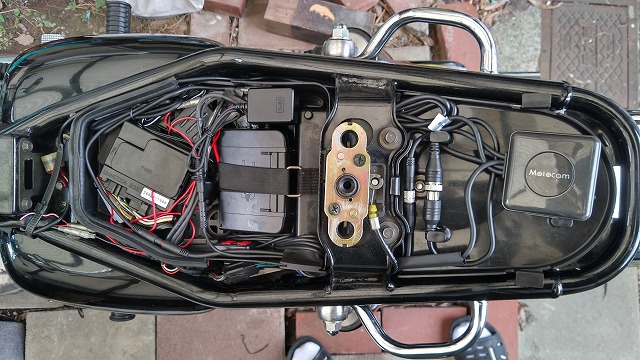 取り回しを、他の電装ケーブル類やサイドカバー締めた時に圧がかからないように