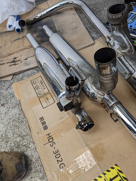 まずは、前回ダメだしされたマフラー。純正に戻します。