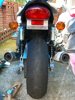 ま、スイングアーム幅以内ではあるから当然入る。アクスル径も同じだし。